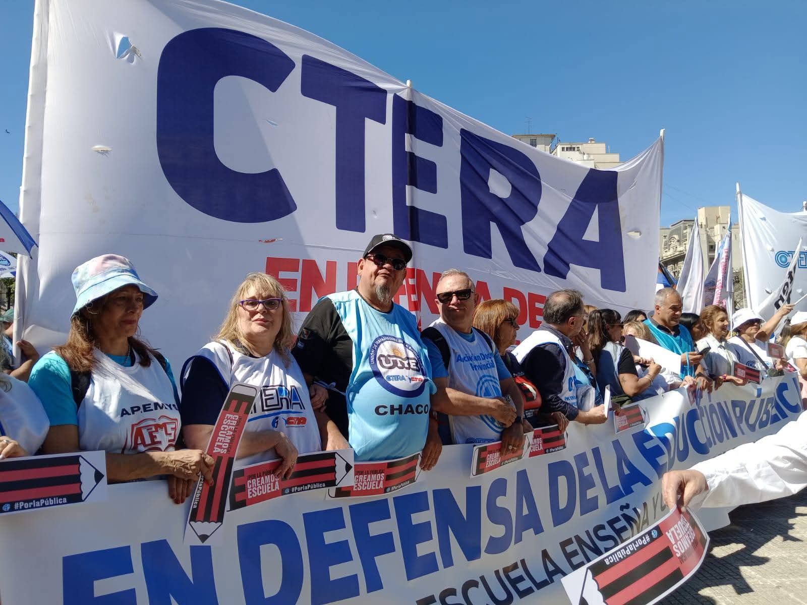 La Confederación de Trabajadores de la Educación de la República Argentina (CTERA) realizó hoy un masivo paro nacional y una multitudinaria movilización al Palacio Pizzurno, en defensa de la Educación Pública, el salario docente y los derechos de las y los trabajadores de la educación.Desde las 10 horas, miles de docentes de todo el país se concentraron frente al Congreso Nacional y marcharon hacia la Secretaría de Educación de la Nación, donde se llevó a cabo un acto central.En su discurso, Sonia Alesso, Secretaria General de CTERA expresó: “Hoy estamos en la calle, una vez más, para exigir lo que nos corresponde: la restitución del FONID, la convocatoria urgente a la Paritaria Nacional Docente, el envío de fondos para infraestructura escolar y la defensa del financiamiento educativo. No vamos a permitir que se siga ajustando sobre la escuela pública y los salarios de las y los docentes.”La Secretaria General de CTERA también destacó la participación activa de CTERA en la campaña internacional de la Internacional de la Educación (IE) “¡Por la Pública! Creamos Escuela”, señalando que: “Esta lucha que hoy damos en las calles de nuestro país es parte de una pelea global. En todo el mundo, las y los docentes estamos defendiendo la educación pública frente a las políticas de ajuste y privatización. Desde CTERA nos sumamos con orgullo a esta campaña mundial porque creemos que solo con una educación pública fuerte se construye justicia social y futuro.”La jornada contó con la presencia de delegaciones de sindicatos de base de todas las provincias, representantes estudiantiles y organizaciones sociales que acompañaron el reclamo.CTERA ratifica su compromiso histórico con la escuela pública y con la defensa de los derechos y el salario docente, exigiendo al Gobierno Nacional respuestas urgentes a los reclamos del sector.PorLaPúblicaCreamosEscuelaBuenos Aires, 14 de octubre de 2025Junta Ejecutiva de CTERA