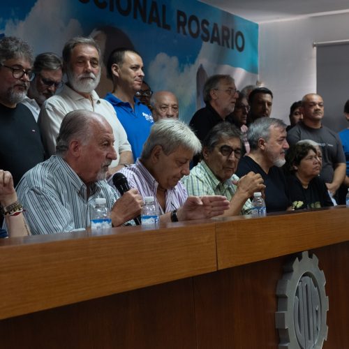 Durante la mañana se realizó una conferencia de prensa en la sede de la UOM de Rosario, donde el secretario general de la Central de Trabajadores y Trabajadoras de la Argentina (CTA-T), Hugo Yasky, señaló: “Lograr esta muestra de unidad, nos da mucha fuerza para seguir peleando”. Y añadió: “Este frente que nosotros constituimos tiene como bandera la defensa del salario y la defensa de nuestros derechos laborales. Enfrente tenemos un gobierno que tiene dos grandes objetivos: destruir la industria nacional y el acuerdo que se firmó con Estados Unidos de Norteamérica es el certificado de defunción para la industria nacional y destruir al movimiento sindical”.